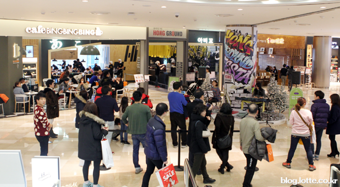 본격적으로 셀렉트 다이닝을 설명하기 전, 잠실 롯데월드타워와 하남 스타필드의 사례로 이야기를 시작하고자 합니다. 그나마 가장 요즘에 생긴 이런 대형 쇼핑몰에 가면 한 번쯤 들어봤을 법한 홍대 맛집들을 모아놓은 푸드코트나 주요 인기 있는 식음료 브랜드들이 대형 건물에 입점한 모습을 보셨을 겁니다. 주요 핫플레이스나 지역에 가면 평소 줄 서서 먹는 빵집과 음식점들 로컬 브랜드 매장의 사장님(테넌트)과 계약을 해서 핫플레이스에 가지 않아도 ‘이 곳'에 오면 모두 즐길 수 있다는 전략으로 F&B 리테일로 꾸민 사례인데요. 롯데월드몰 3층에 가면 ‘홍대돈부리, 아비꼬’ 등으로 채운 홍그라운드 계획이 바로 이러한 전략으로 컨셉을 잡고 개발한 사례죠. 일반 소비자들은 한 건물 내에서 쇼핑하고, 맛있는 음식과 음료를 즐길 수 있어서 평소 주말에 가면 사람들이 많이 있는 것을 볼 수 있습니다. 일반 소비자와 다르게 사실 제 개인적인 입장에선 홍그라운드 라는 명칭부터 입점한 업체들이 크게 트렌디하게 느껴지진 않습니다.