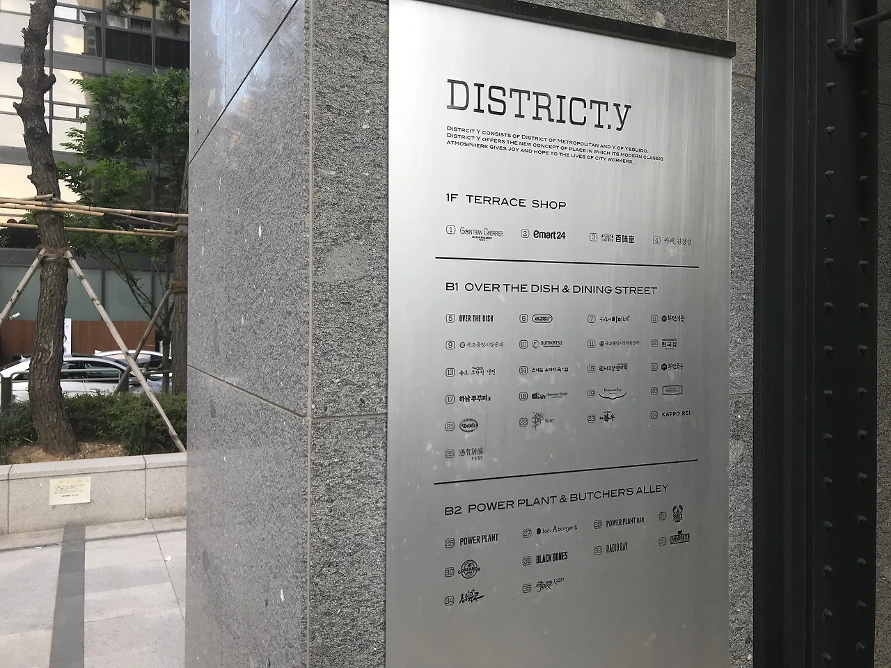 ⑤ 건물명 SK증권빌딩 l 편집숍명 디스트릭트 와이 l 특징 셀렉트 다이닝에서 한층 진화한 큐레이티드 아케이드 l 주요 입점 매장 주유별장, 갓포레이, 모던눌랑, 램브란트, 삼육공, 곤트란 쉐리에, 카페 진정성 등 ⑥ 건물명 IFC몰 l 편집숍명 푸드스트리트 l 특징 CGV, CJ푸드월드가 들어선 복합 외식 문화 공간 l 주요 입점 매장 제일제면소, 온더보더, 판다익스프레스, 사리원, 락앤웍, 어니스트키친, 멘뮤샤 등
