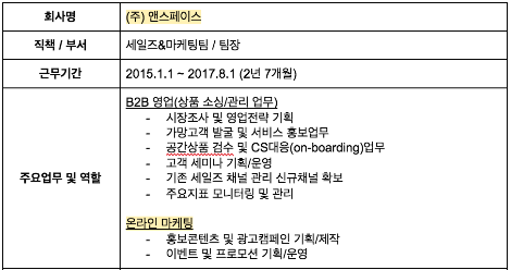 부서 및 직급: 세일즈&마케팅팀 팀장