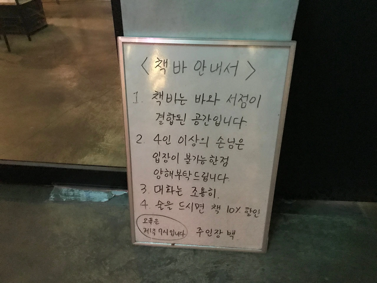 - 공간 크기(좌석수) : 약 20명 (4인 이상의 손님은 입장이 불가)
