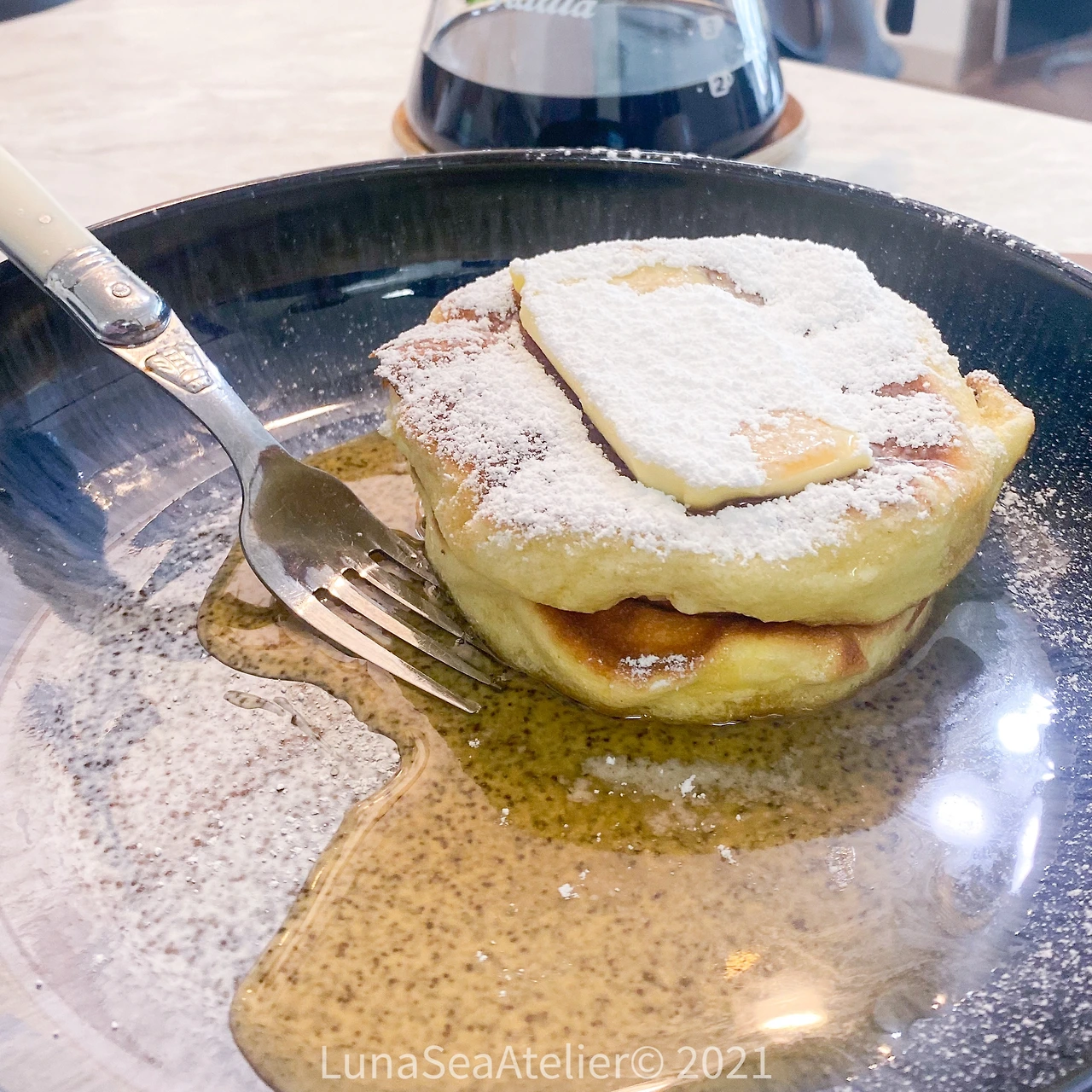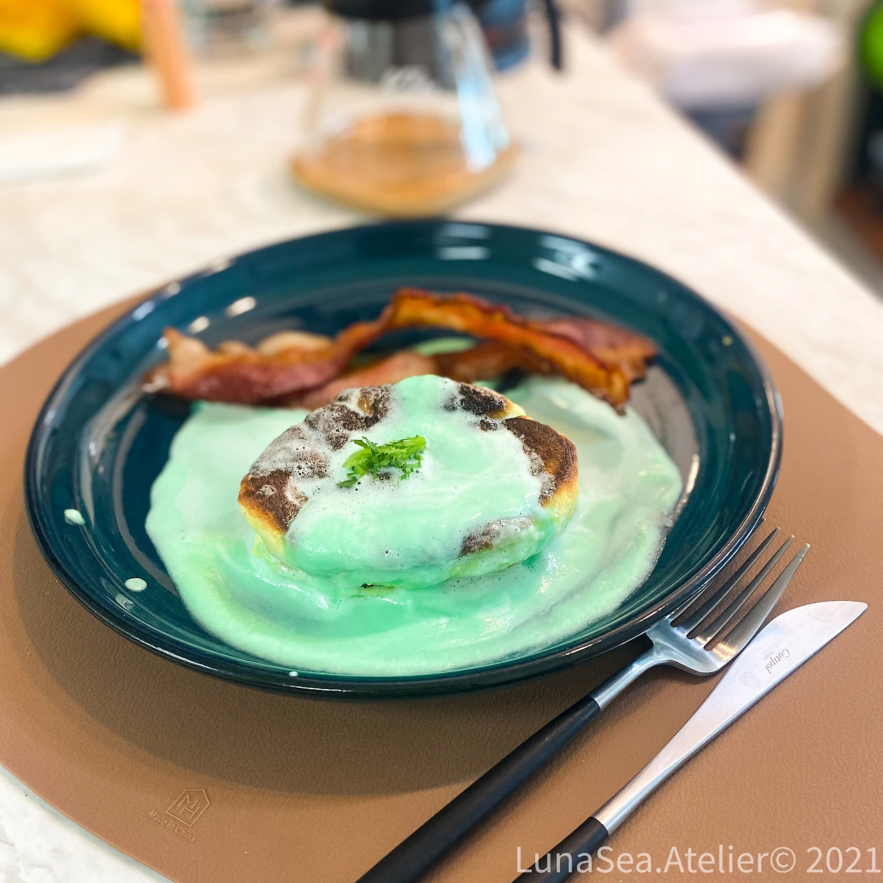 요즘은 집에서 시간이 여유로운 토요일 아침에 가끔 베이킹을 한다. 수플레 만들기를 좋아하는 남편은 후식으로 종종 컵에 담긴 수플레를 해줬는데 이 날은 도전정신이 불붙었다. 아이를 위해 수플레 팬케이크에 도전한 거다. 특별한 생크림을 곁들여 주겠다고 정성을 들였지만 초록색에 민트 향 생크림은 아이에겐 거절당해서 내 몫이 되었고, 아이는 늘 그렇듯 메이플 시럽으로 오케이 했다. :)