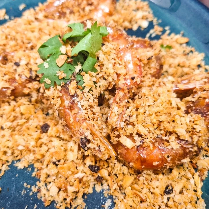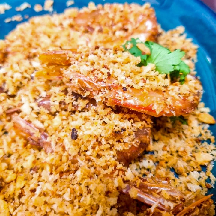 새우 10마리 , 빵가루 적당량 , 마늘 빵가루 적당히