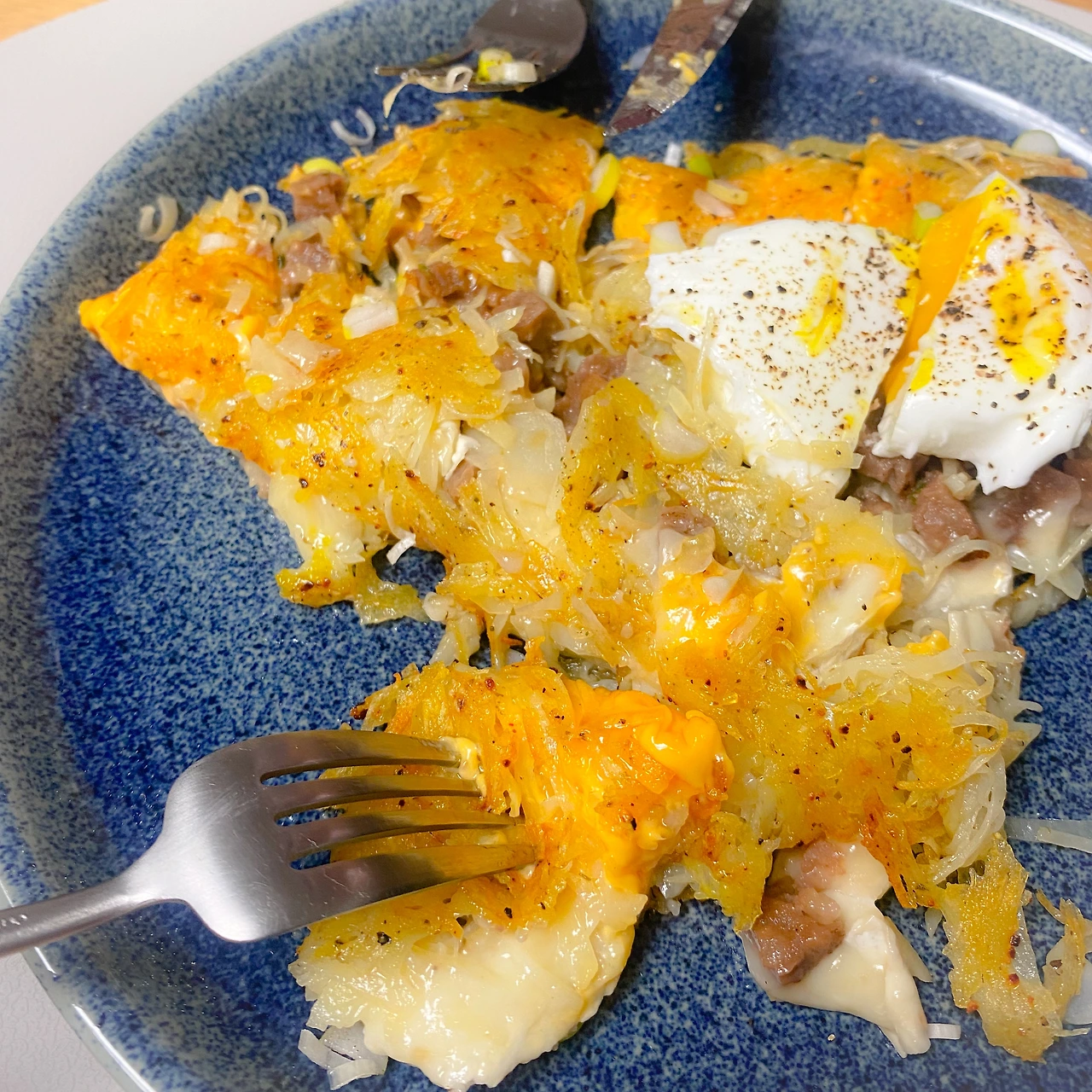 <감자채 전.... 치즈, 떡갈비, 수란을 곁들인>
