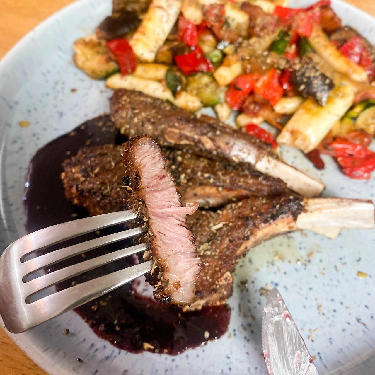주중엔 내가 저녁을 준비하지만 주말엔 얻어먹는 재미가 쏠쏠하다. 뭘 해줄지 궁금하기도 하고 기다리는 기분도 좋다. 조금 늦은 점심이라 뭘까 했는데, 오랜만에 남편이 양고기 스테이크를 해주었다. 요즘 새로운 스테이크에 도전하는지 소고기나 돼지는 뜸하다. 며칠 전 주문한 양고기도 받았겠다, 겸사겸사 오랜만에 주말 낮부터 스테이크를 구웠단다. :)
