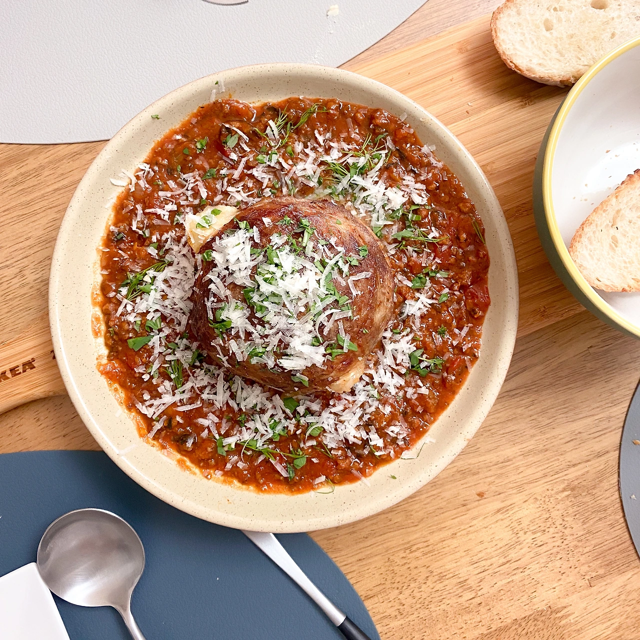 토마토 팍시는 프랑스 가정식으로 고기, 야채 따위를 다져 토마토 속을 채운 음식이다. 팍시(farcis)는 속을 채운다는 의미인데 보통은 토마토나 피망 등의 속을 파서 소고기나 야채를 다져 속을 채운다. 남편의 소고기 팍시는 반대로 소고기를 동그랗게 그릇처럼 만들어 치즈와 토마토를 채워 넣었다. :)