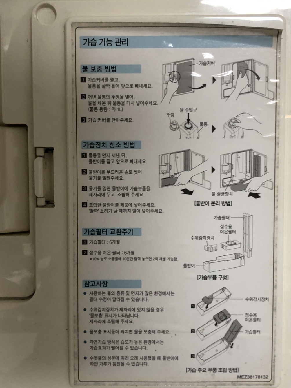 얼마 전 처형네 집에 설치된 10년 정도 된 에어컨을 대대적으로 청소를 한다고 전면을 분해한 모습을 보았는데, 자연 기회식 가습 모듈이 탑재되어 있었다. 물론 10년 동안 한 번도 쓰이지 않은 상태였다.