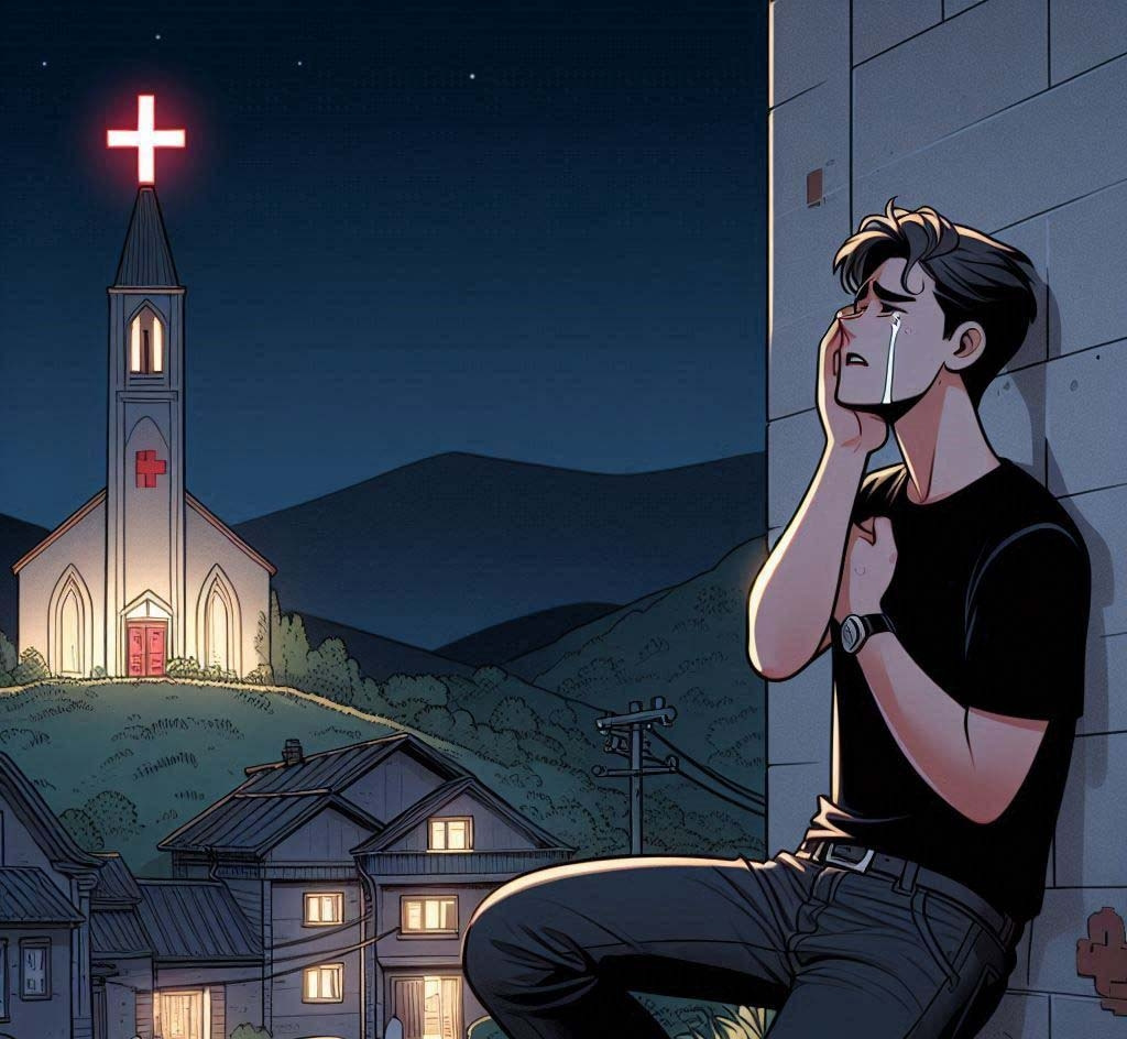 난생처음 십자가를 주목해서 바라보았습니다. 그런데 갑자기 내 눈에 놀라운 것이 보이기 시작했습다. 아! 저 뾰족탑 십자가 위에 웬 사람이 대롱대롱 매달려 있는 것입니다. 그리고 그 사람의 옆구리에서, 손목과 발목에서, 굵은 핏방울이 뚝뚝 떨어져 내리고 있었습니다.