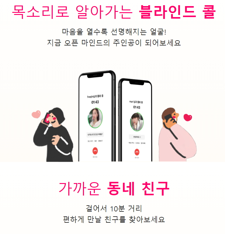 허수 사용자를 배제하고 다수와 매칭이 가능하게 됐다. 전화나 화상전화는 허위 계정의 어려움이 있다. 또한 데이팅은 남녀가 1:1로 매칭 되어야 하지만, 친구 만들기는 다대다로 만나도 상관없다. 남자가 다수였던 성비에 대한 문제도 해소한 것.
