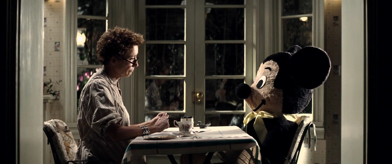 트래버스에게 그 모든 건 세상의 어둠을 감추는 방편이며 사탕발림이기 때문이다. <메리 포핀스> 시나리오 작업을 위해 LA 디즈니 스튜디오를 찾은 그녀는 “해님이 마중 나왔나 봐요!”라며 인사하는 운전기사 랄프(폴 지아마티)에게 말도 안 되는 소리라며 코웃음 치고, 디즈니 측이 그녀의 숙소 침대에 떡 하니 앉혀 놓은 사람만 한 미키마우스를 보고는 질색하며 끌어내린다. (심지어 그녀는 미키마우스에게 침대에 있었다는 죄를 물어 벽을 보게 하는 벌을 내린다.)