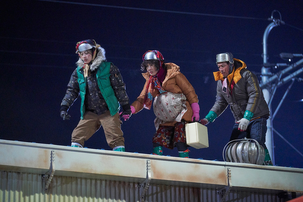 최초 좀비 바이러스 감염자로서 사건의 발단을 맡을 자격이 주어졌던 만덕은 좀비 항체 보유자가 되어 결말을 책임질 의무도 주어진다. 이제는 만덕이 가족의 대박 아이템이다. 만덕은 좀비의 팔을 깨물어 그들의 몸에 항체를 주입하는 도구가 된다. 우거지상을 하고 앉아 재봉틀로 박듯 무한 작업 중인 상황에서 만덕이 의지할 수 있는 건 소주뿐이다. 만덕에서 시작해 만덕으로 끝나는 이 영화는 그래서 깔끔하다.