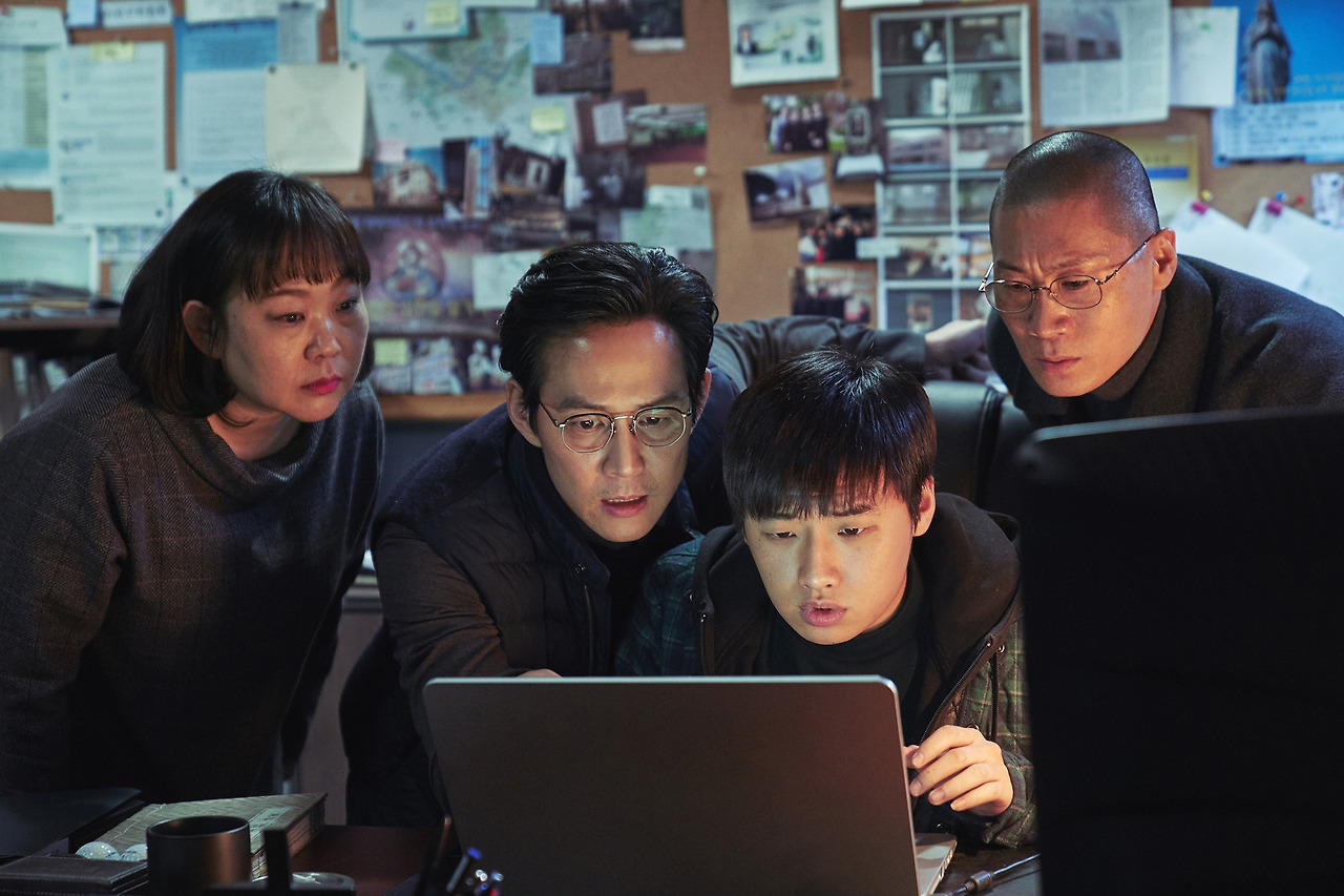 그 시간을 통과해 탄생한 <사바하>는 친절했다. 요령껏 넘어가려고 했던 신흥종교가 너무나 수월히 이해되어 나 자신이 당황스러울 정도였다. 등장인물 덕분이었다. 일단 기자에 가까운 목사 박웅재(이정재)가 일타강사처럼 사천왕의 뼈대를 만들면, 그의 조력자인 고요셉(이다윗)이 똘똘한 학생처럼 관객이 궁금할 법한 부분들을 질문해 살을 붙였다. 여기에 어딘가 세속적인 느낌이 강하게 풍기는 해안 스님(진선규)의 자비로운 추가 해설까지 더해지면 나와 같은 무식자도 속속들이 파악 가능한 지경에 이르는 것이다.
