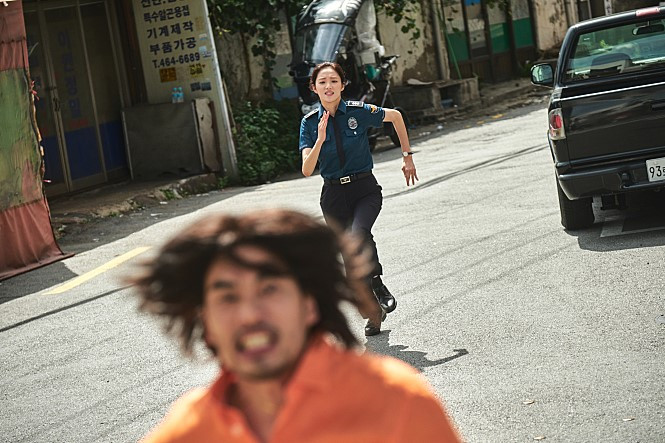주인공은 컴퓨터 바이러스처럼 어디든 뚫고 들어가며, 구원자는 연속극 속 택시처럼 딱딱 맞춰 등장한다. 듬성듬성한 서사를 메꾸기 위한 도구로 쓰이는 건 역시나 웃음이다. 영화는 화장실 유머와 욕설 그리고 슬랩스틱을 서울 지하철 1호선 노선처럼 짧고 연속적으로 배치하지만 그렇게 만들어진 웃음은 가벼워 지속력이 떨어진다. 보고 나면 남는 게 없는 것 같은 찝찝함은 거기에서 온다. 이 모든 사항을 동그라미 치는 <걸캅스>의 서사는 그래서 무기력하다.