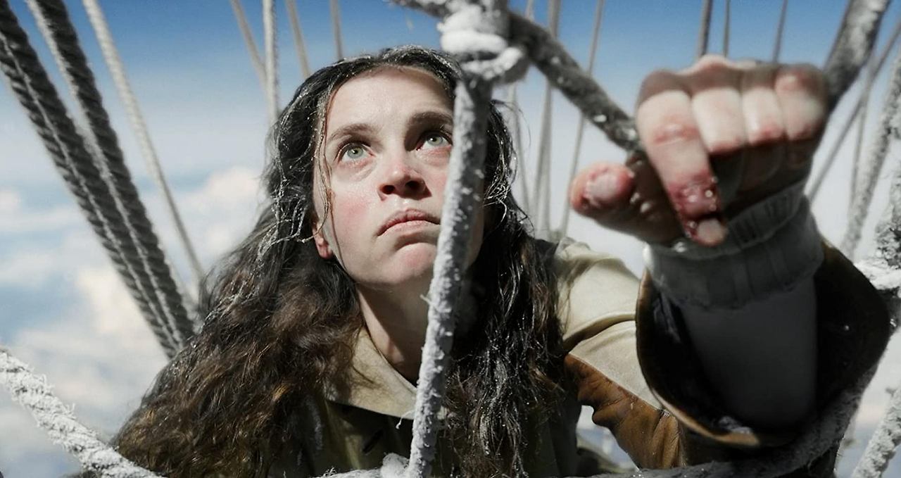<에어로너츠> 후반 어밀리아가 엔벨로프(Envelope, 열기구의 풍선 부분)의 꼭대기를 향해 오르는 장면에서 카메라가 포착한 존스는 혹한기의 맹수 같다. 8,000m에 진입해 기온이 영하 5도까지 떨어지자 어밀리아의 머리카락과 눈썹은 하얗게 얼어붙고 두 볼은 추위에 불그뎅뎅해졌지만 눈에선 불이 난다. 동상으로 쓸 수 없게 된 양손 대신 양팔을 그물 같은 로드 테이프(엔벌로프 전체를 감싼 두꺼운 천으로 된 테이프)에 끼워 넣으며 그는 위로 전진한다. 풀샷으로 다시 본 그 장면에는 거대한 설산을 등반하는 산악인 한 명이 있다.