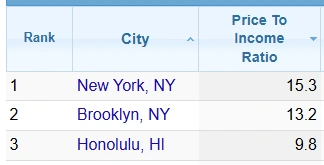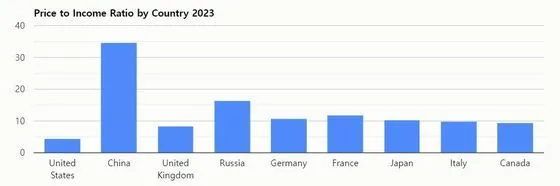작성일 현재 NUMBEO에서 서울(15.3)과 뉴욕(27.3) PIR을 비교해 보면 서울이 뉴욕보다 78% 이상 높다. 뉴욕 집값이 훨씬 비싼 것 아니냐고 반문하겠지만, IMF 2024년 추정치 기준 미국의 1인당 명목 GDP는 8.5만 달러이고 한국은 3.4만 달러로 미국인의 소득이 250% 더 높다.