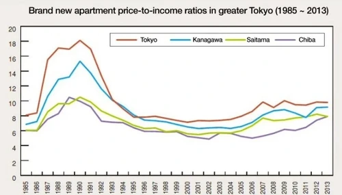 일본 버블 경제 시절 도시별 PIR [출처: Tokyo Property Central]