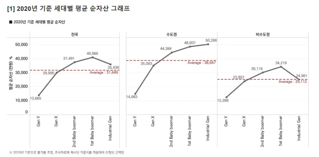 2021년 서울시 산하 서울연구원에서 발간한 가계금융복지데이터에 따르면 생애주기(라이프사이클) 상 주택 구매 수요가 가장 많은 30대는 Y 세대(1985~1996년 출생)에 속한다. 이들은 이전 세대인 산업화 세대(1940~54년 출생), 1~2차 베이비부머(1955~74년 출생), X세대(1975~84년 출생)에 비해 유일하게 앞선 세대의 순자산을 뛰어넘지 못했다. 특히 수도권 1990년대생의 자산 불평등이 가장 심각하다.