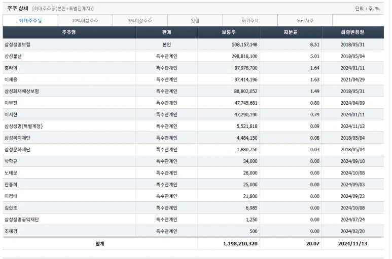 삼성전자의 최대주주는 이재용을 비롯한 삼성가의 특수관계인들이다. 지분은 20.1%이다.