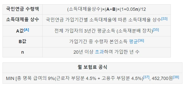 * 1973년에 국민복지연금법을 공표했지만 석유파동으로 무기한 연기가 되었다가 1986년도에 국민연금법을 공포했다.