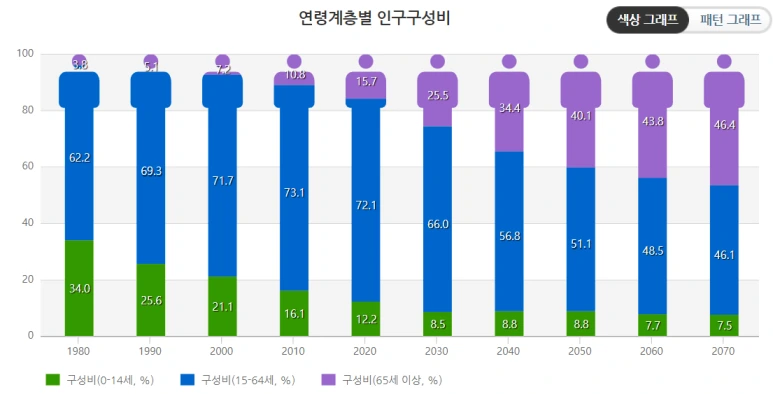 국민연금을 만 65세* 이상부터 받는 노령연금의 보험료율(현행 9%)을 높이거나 소득대체율을 낮추려는, 혹은 지급 시기를 만 70세까지 늘리는 논의가 정부에서 진행 중이다. 그 배경에는 상대적으로 선진국 대비 보험료율이 낮다는 점(e.g. 독일 18.7%, 일본 17.8%, 미국 13%), 무엇보다 국내 합계출산율이 0.8(2021년)로 기금 고갈이 매우 빨리 실현될 예정이라는 예정된 파국 때문이다.