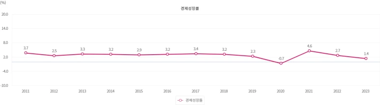 이러한 소득주도성장의 후유증은 경제성장률에 고스란히 반영된다. 2022년 2%대 경제성장률에 진입한 이후 계속 낮아져 금년(2025년)에도 정부는 1%대 경제성장을 예상하고 있다. 실제 지표는 더 암울할 수 있다.