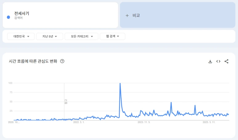전세사기라는 단어가 한참 이슈가 되었을 때 집값이 정점을 찍고 주택경기가 하강했던 2022~2023년 시점과 겹친다.