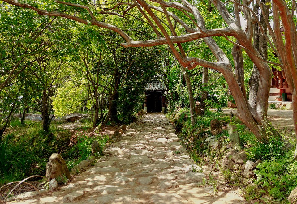 아름드리 꽃그늘을 드리우는 동백숲 사이로 난 돌길을 따라 집안으로 들어서면 세월의 연륜을 품은 아담한 별채를 만나게 된다. 동백나무 터널을 지나면 문득 푸른 하늘과 너른 잔디밭이 펼쳐진다. 이 집은 풍경만으로도 이미 명당이다.