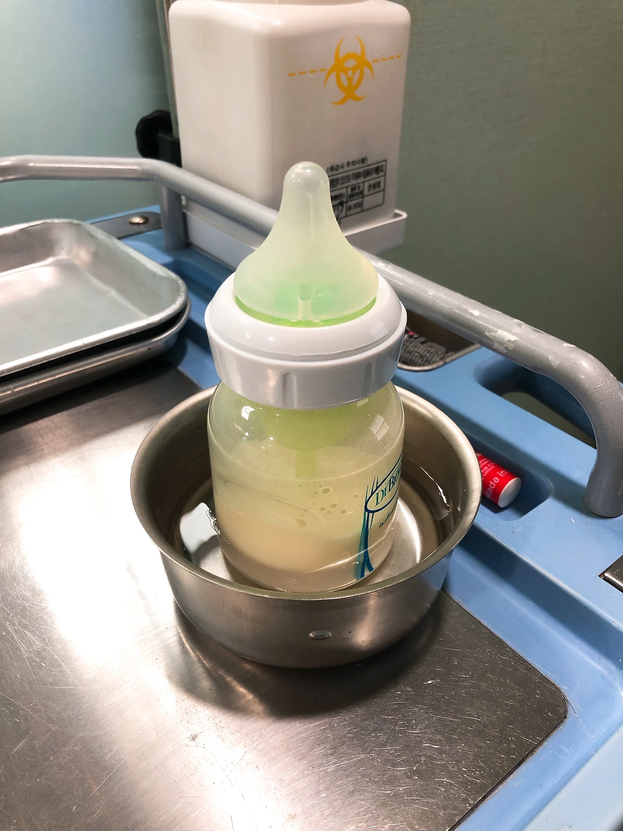 잠이 들었던 아이는 배가 고팠는지 잠에서 깨어 밥을 달라고 울었다. 분유를 만들려고 젖병을 챙기고 있었는데 처음 보는 기구가 보였다.