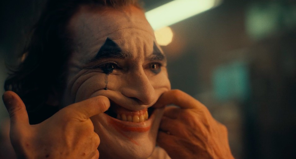 사전에 따르면 조커는 웃기는 사람이라는 의미로, 흔히 과장된 분장을 한 피에로를 떠올릴 수 있으리라. 길거리에서, 모처럼 맡게 된 어린이 병동에서 아서는 립스틱을 귀에 걸릴 만큼 짙게 발라 입술을 만든 다음 과도한 율동으로 관객들에게 재미를 준다.