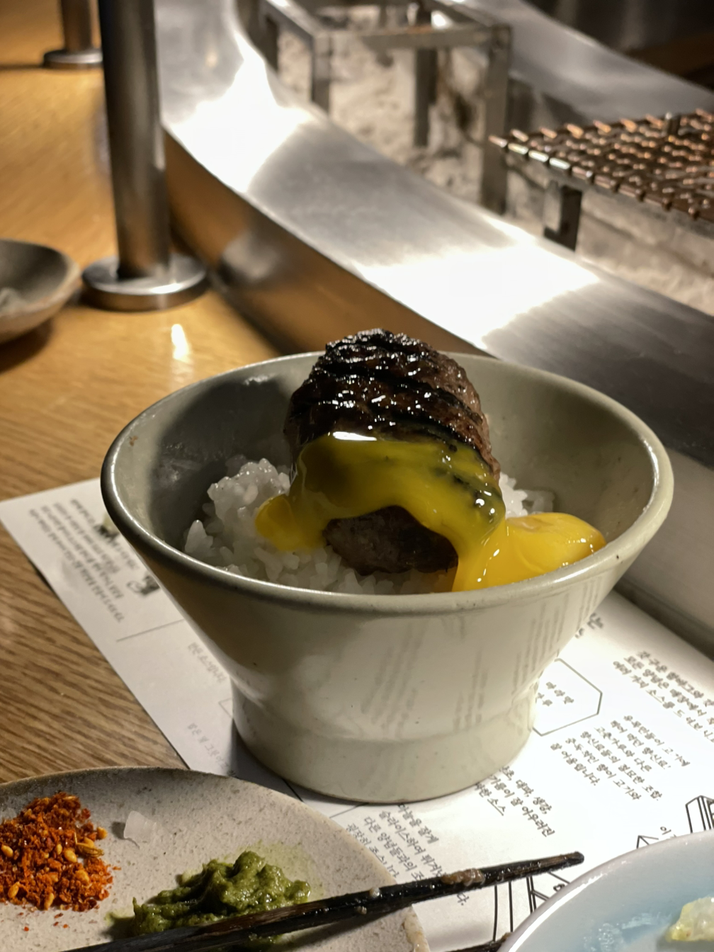 계란은 하나까지 무료로 제공해 드립니다. 노른자만 풀어서 소스처럼 고기에 끼얹어도 좋고 육즙이 스며든 흰밥에 풀어 마치 죽처럼 드셔도 좋고 즐기는 방법은 무궁무진.