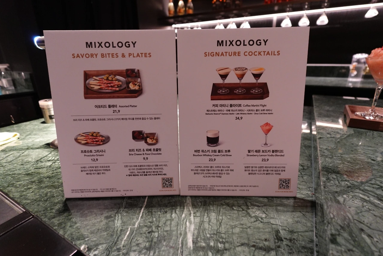 - 스타벅스 리저브 메뉴를 비롯하여 이곳에서 만의 칵테일 메뉴, 커피 샘플러 등을 만날 수 있다.