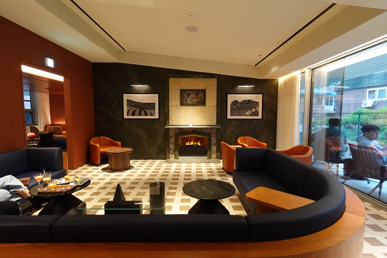 개인적으로 가장 좋았던 공간은 2층인데 넓은 공간을 활용한 벽면 인테리어, 외부 공간 연계, 개성 있는 가구와 의자가 눈에 들어왔다.