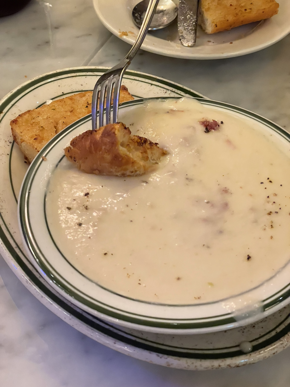 클램 차우더 수프는 감칠맛이 정말 뛰어났고 글을 쓰려 기억을 되뇌이는 지금도 생각나는 맛이다. 백합 조개의 감칠맛이 환상적이었다.