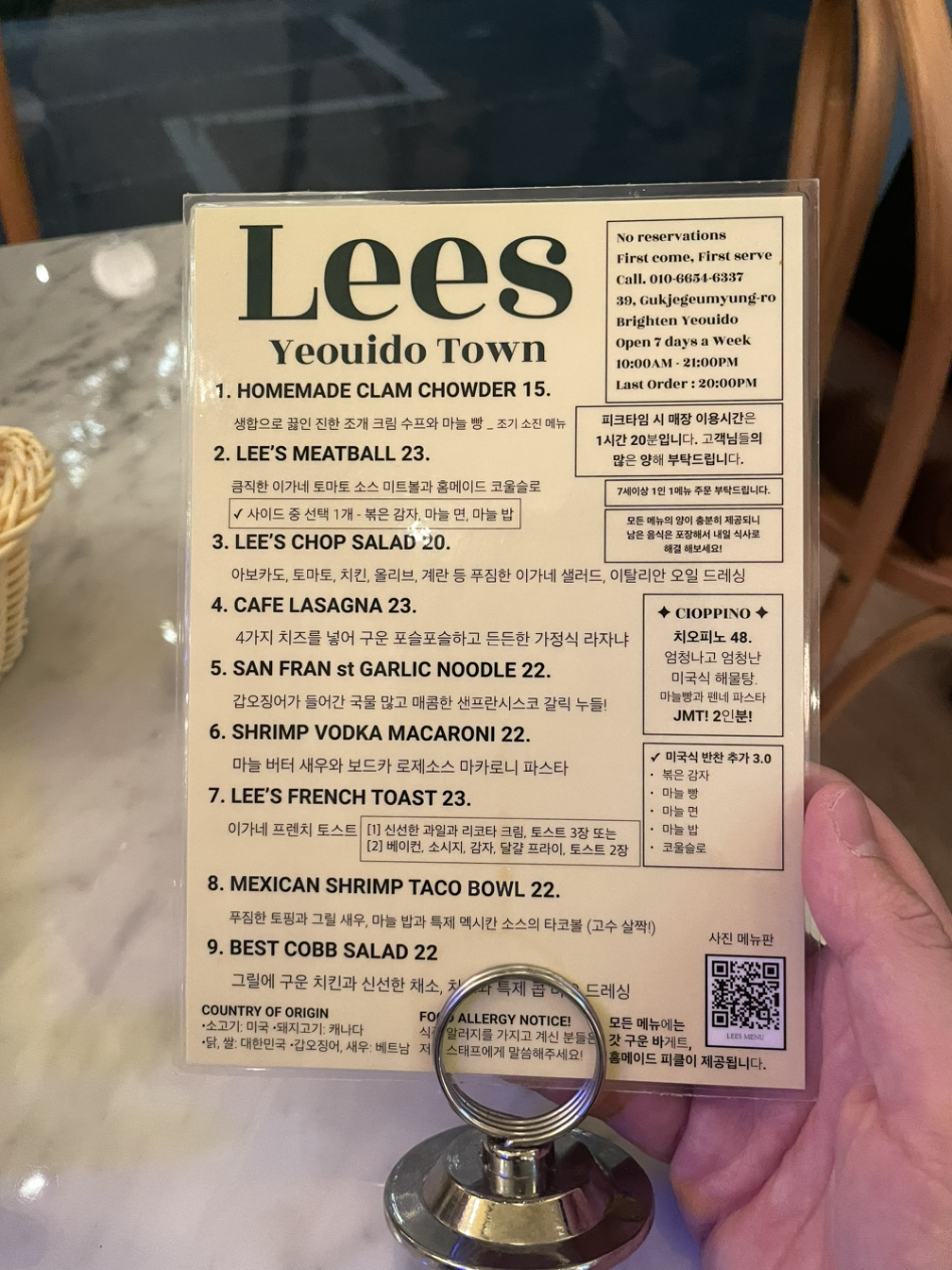 내가 생각했을 때 현시점 가장 트렌디한 브런치 카페를 소개해보려 한다. 바로 여의도에 위치한 리스카페(Lees Cafe)이다.
