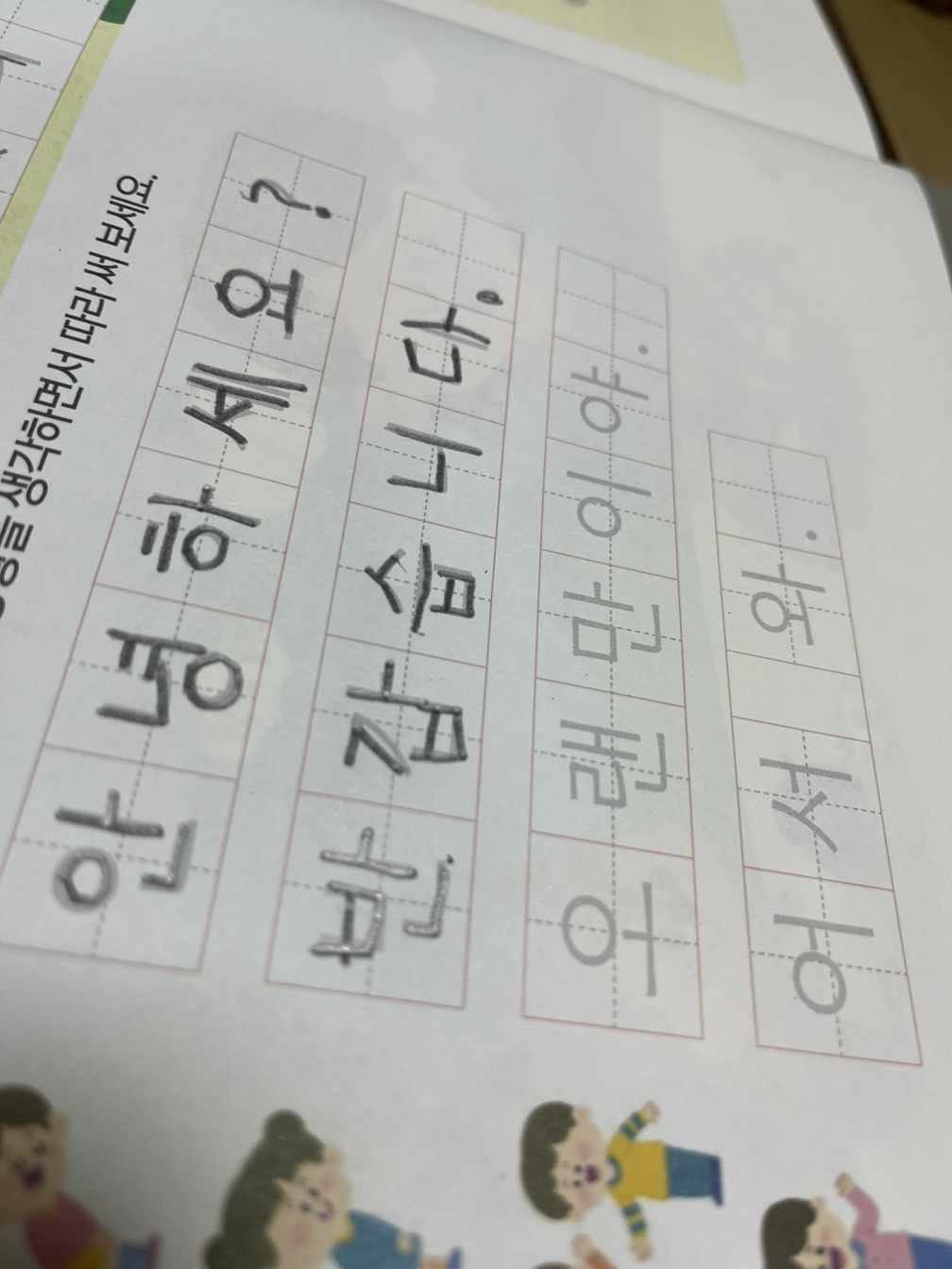 뚱이가 다니는 유치원에서는 한 주간 활동한 사진을 모아서 전송해 주신다. 얼마 전에는 한글로 무언가를 써서 완성하는 활동을 했는데, 엄마 눈에 뚱이의 글씨는 거의 한석봉이었다. 아니, 우리 딸이 이렇게 글씨를 잘 쓴다니! 난 놀랐고, 기뻤고, 자랑스러웠다.
