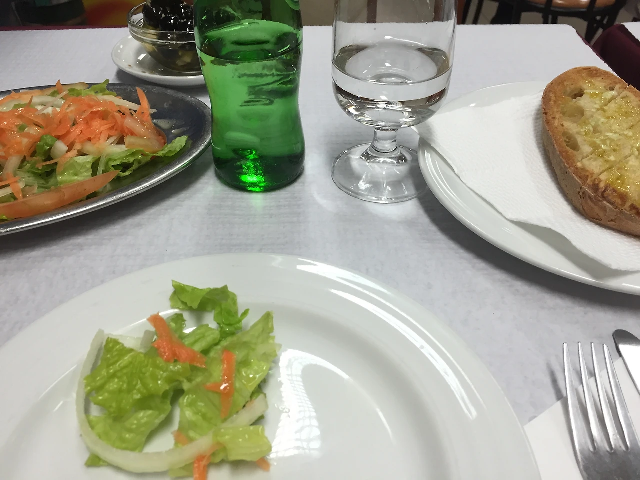 올리브유를 부려 살짝 오븐에 구운 바게트 빵은 아주 맛있었다. 올리브와 샐러드로 배를 채울 때 쯤.