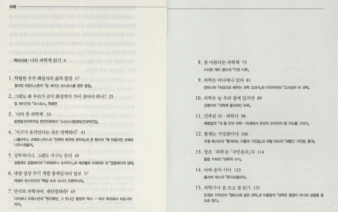 과학사도 그렇지만 과학자에 대한 책이나 과학 지식과 정보를 다룬 책은 워낙 방대하여 한 권을 지목하기는 어렵다. 최근 대중을 위한 과학책들이 쏟아져 나오고 있다. 나처럼 과학은 어려운 것, 전문가의 영역이라는 편견을 갖고 사는 사람들에게는 희소식이다.