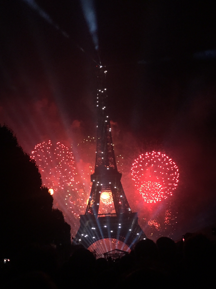 한시간 정도 음악회가 광장에서 화려하게 열리고 30분정도 불꽃축제가 열렸는데, 음악과 잘 어울려져 장관을 연출하더군요. 파리시민 다 온 만큼 너무나도 많은 사람이 모였습니다. 목빠지게 기다리다 다들 탄성을 지르고 너무나도 좋아하네요. 중간에 애국가가 나오면서 에펠탑은 프랑스 국기의 삼색으로 물듭니다. 시민들의 노랫소리와 더불어 뭔가가 느끼지는 멋진 관경이었습니다. 작년 같은 날, 니스에서 많은 사람들이 다치고 죽는 참사때문에 무장 경찰도 많이 보니고 경비도 삼엄했습니다. 가방 검사는 기본이구요.