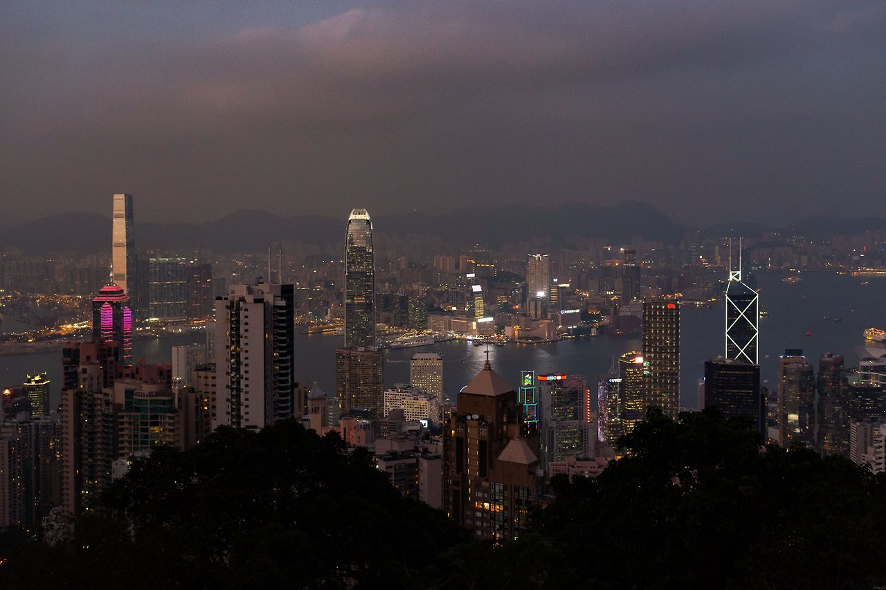 빅토리아 피크(Victoria Peak)에서 촬영한 홍콩(香港)이다. 홍콩의 행정구역은 크게 홍콩섬(香港島, Hong Kong Island), 구룡(九龍, Kowloon), 신계(新界, New Territories) 세 지역으로 구성된다.