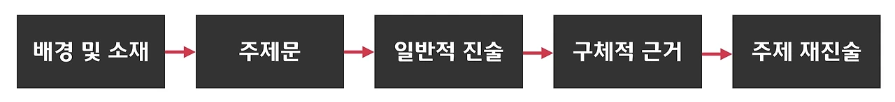 일반적인 글의 기본구조는 아래와 같습니다. 하지만, 이 기본적인 구조에서 여러가지 변형이 있을 수 있습니다.