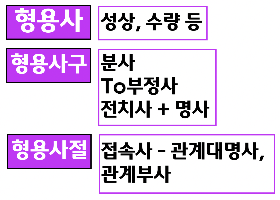 형용사는 문장 속에서 명사와 대명사를 수식하며(직접수식), 주어와 목적어를 보충 설명하는 보어의 역할(간접 수식)을 하기도 합니다.