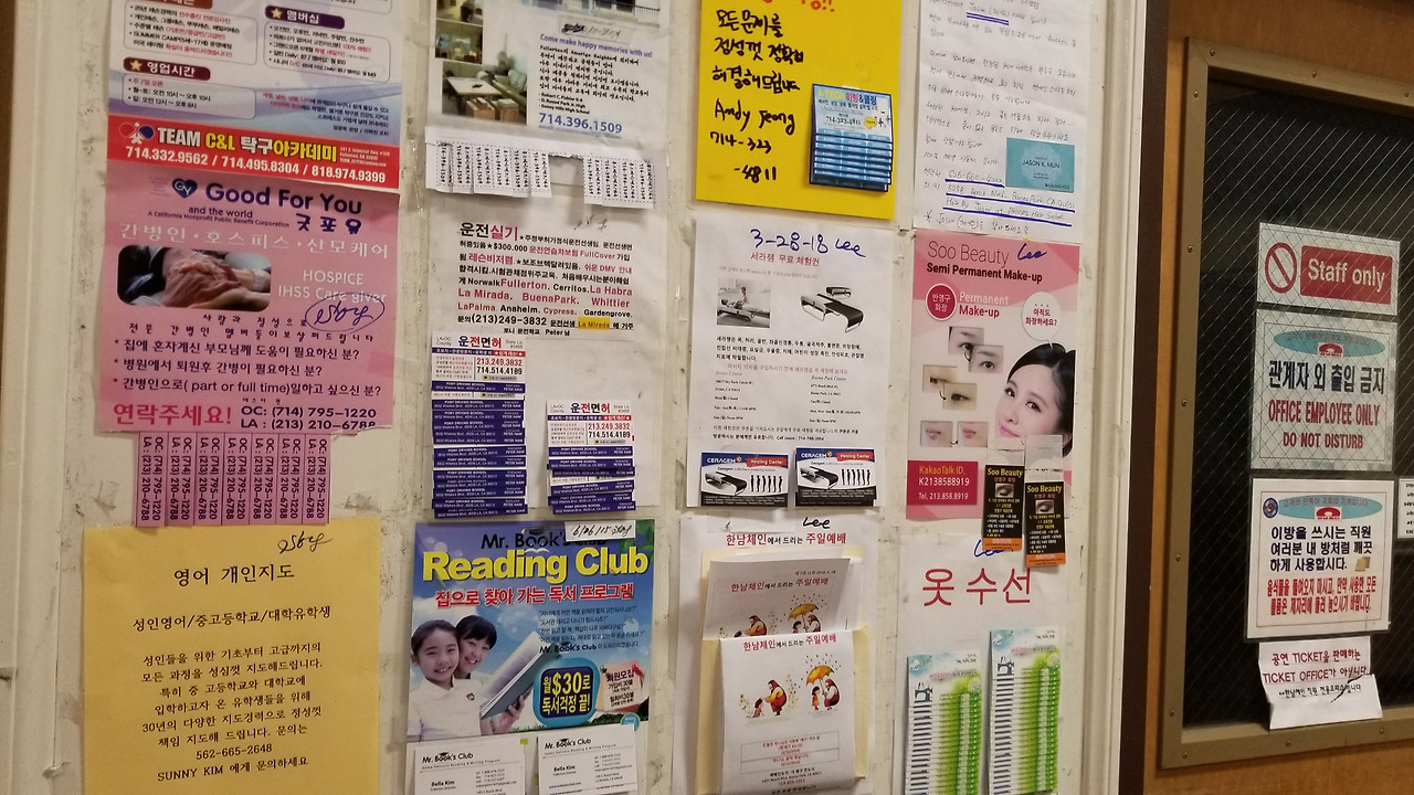 나의 경우를 제외하고, J처럼 나성 새내기들에게는 그래도 몇번은 한국마켓을 다녀보는 것이 좋다. 나성에 사는 이들이 어떻게 살고 있으며, 무엇을 즐기고 커뮤니티에서는 어떤 소식이 나는지 쉽게 찾아볼 수 있다. 집을 구하거나, 혹은 파트타임 잡을 구하고 싶다면 한인마켓을 찾아 게시판을 살펴보면 좋다.