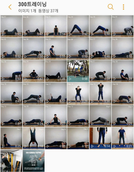 저 같은 경우는 300이라는 숫자를 상체, 코어, 하체 등의 부위 운동들을 골고루 배분하여 함께 할 수 있도록 했습니다. 처음에 300개 정도는 별거 아니겠지라고 생각했는데, 그 생각보다 쉽지는 않더라고요. 그래도 횟수를 반으로 나누어 1세트를 끝내고 다시 1세트를 하니까, 지쳤던 부위도 다른 운동을 하는 사이에 회복되고, 운동을 재미있게 할 수 있었습니다. 일단 운동이 지겹지 않게 전신으로 골고루 설계하는 것을 추천드립니다.