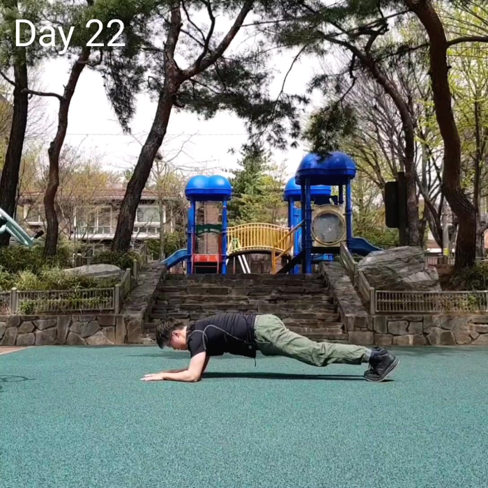 내용 : 팔 굽혀 펴기 50개, 윗몸일으키기 50개, 스쿼트 50개, 플랭크 100초,