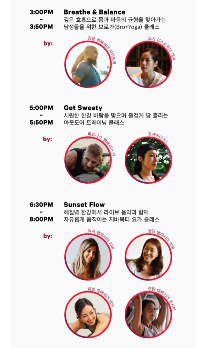 마지막 클래스는 뉴욕에서 날아온 룰루레몬 뉴욕 앰버서더 '리마' 선생님과 청담 앰버서더 '비하' 선생님이 진행해주셨다. 해 질 녘의 노을을 바라보며 한강변에서 요가를 하는 것이 이렇게 좋을 줄이야. 라이브로 연주되는 가야금 소리를 벗 삼아 시원한 바람을 맞으며 하늘을 보는데, 행복했다. 자유로웠고 자유로웠다.