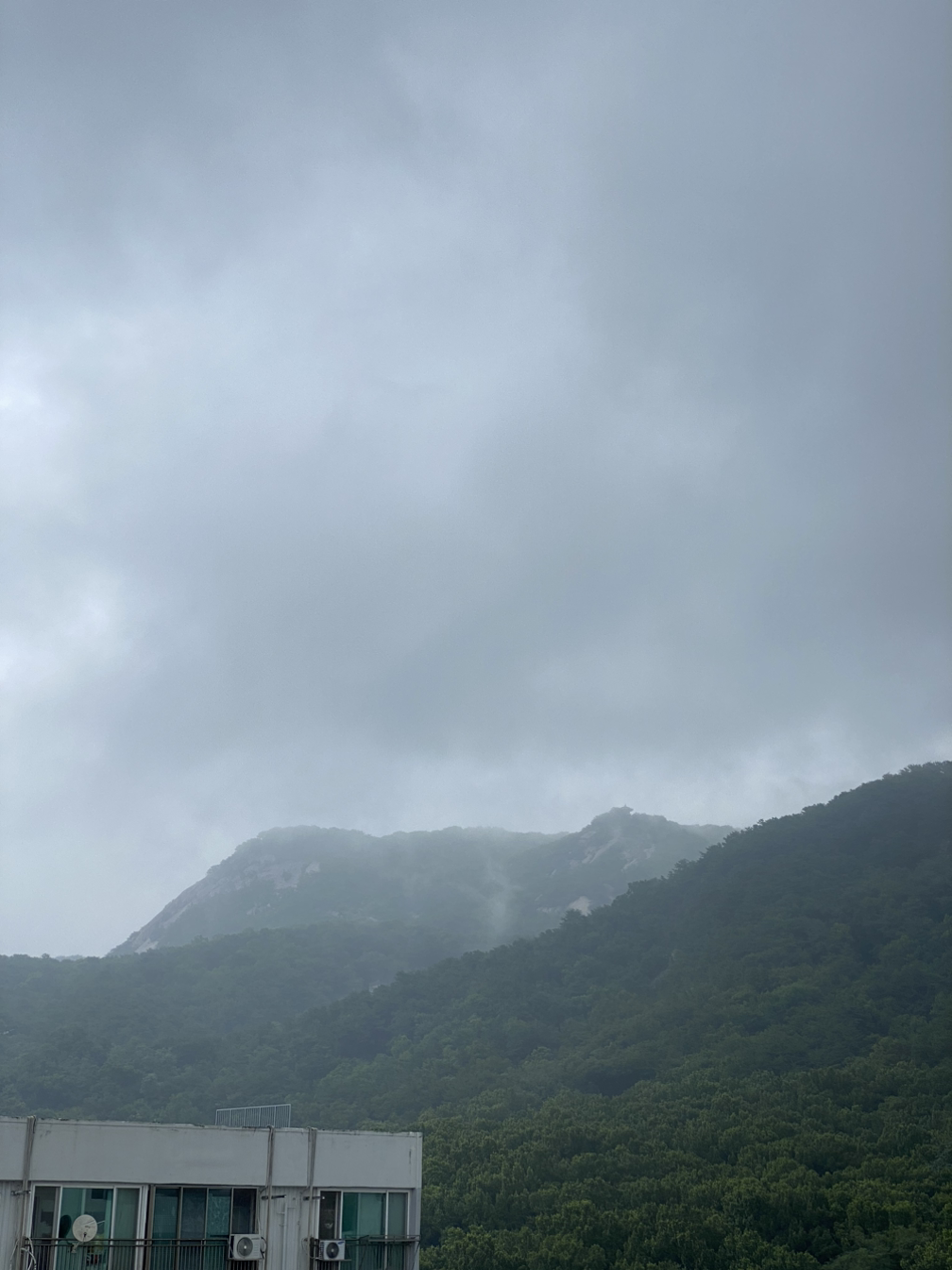 하늘이 산을 어루만지는 것 같기도 하다.