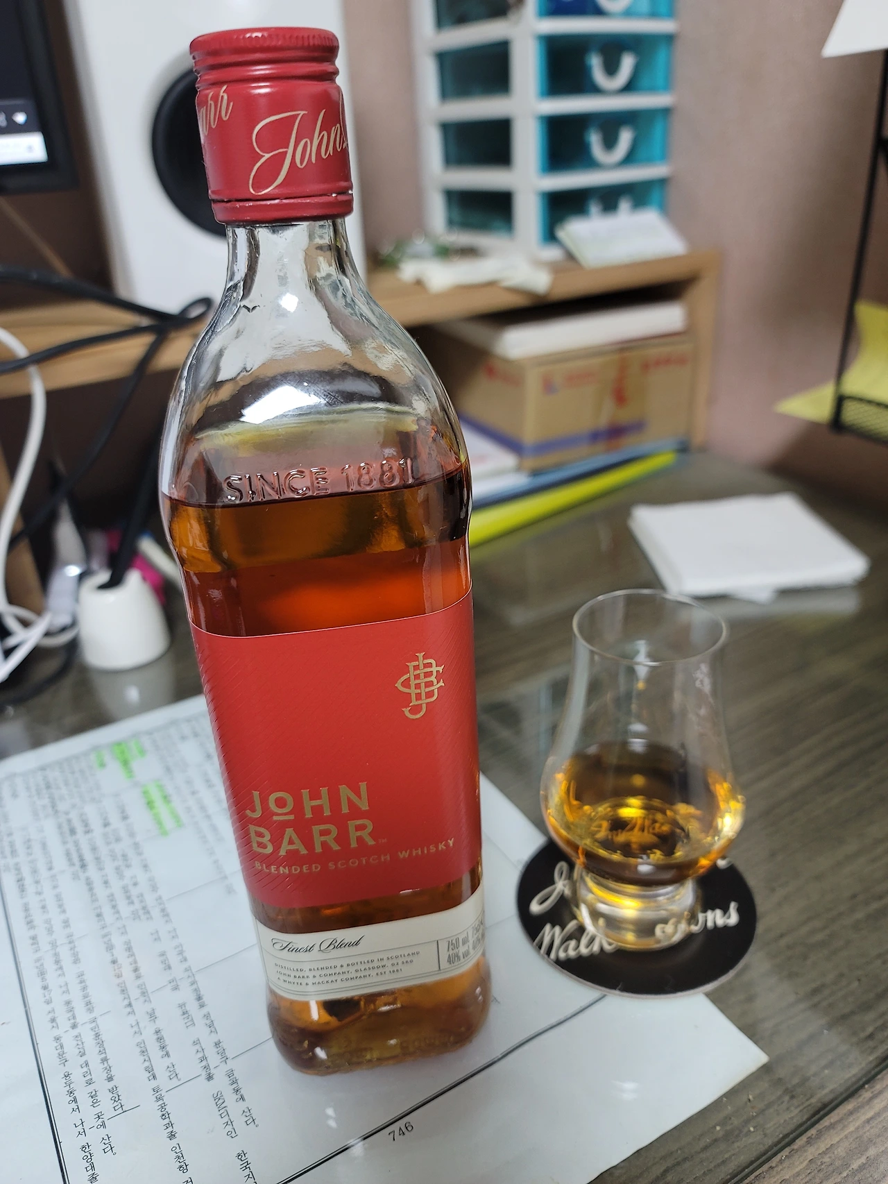 이마트 편의점에서 20,000원에 구입해서 John Barr Finest(13,000원)와 가격 차이가 별로 안 남. 큰 맥락에서 보면 두 위스키가 닮은 면이 많지만, John Barr Reserve가 조금 더 고급스럽고, 단맛과 알코올 맛이 더 살아 있어서 위스키다움이 더 강함. John Barr Finest는 너무 무난해서 특색 있는 위스키를 찾는 사람에게는 오히려 심심하게 느껴질 수 있을 것 같음. 반면에 John Barr Reserve는 부드러우면서도 위스키의 일반적인 특성이 잘 살아있는 편임. 대중적으로 '가성비 위스키'로도 알려진 이유도 이 때문이 아닐까 함. 가격 부담이 없이 위스키를 즐기고 싶을 때, 또는 입문용으로 시작할 때, 나쁘지 않은 선택지로 고려해 보아도 좋을 듯하다는 생각이 들었음.