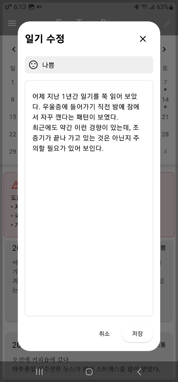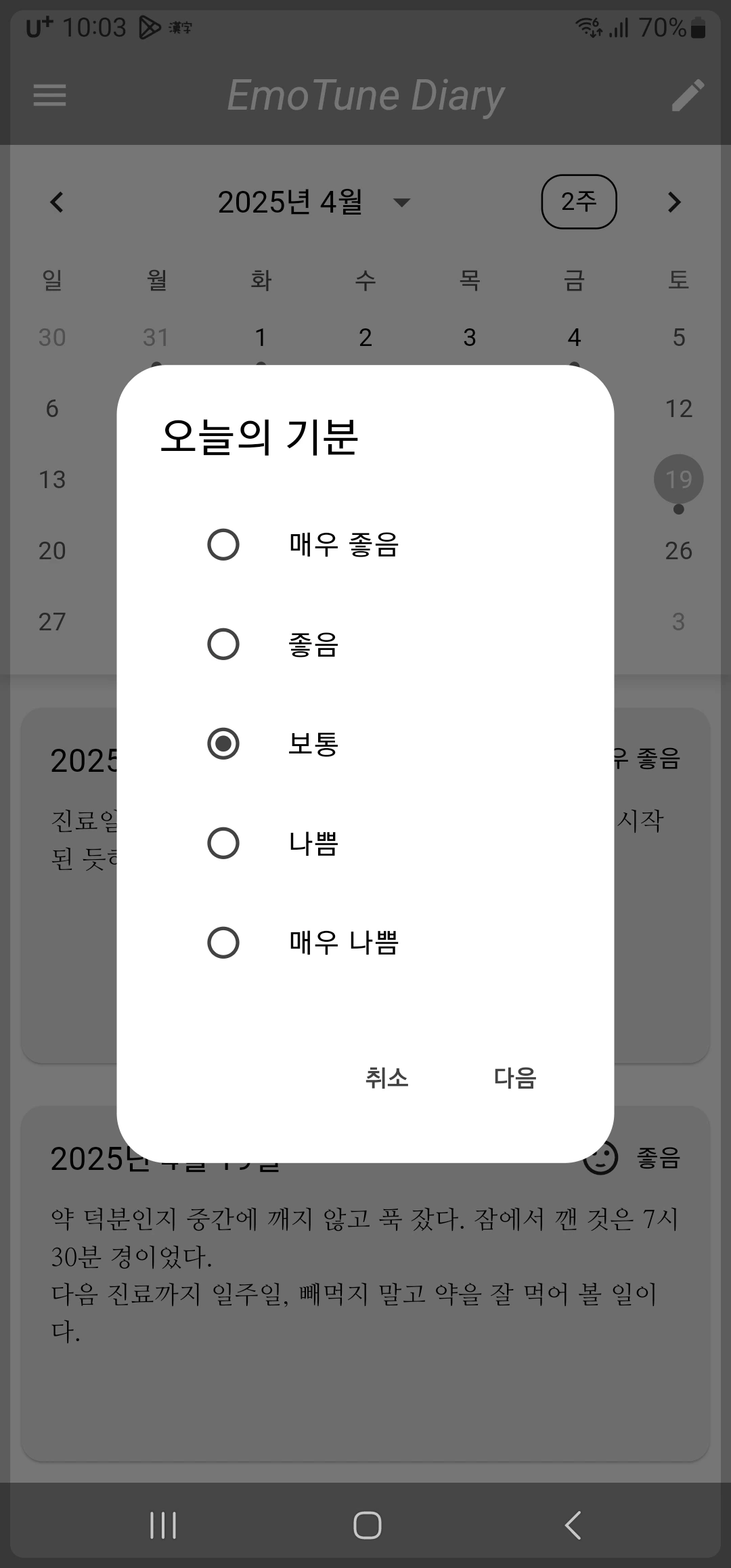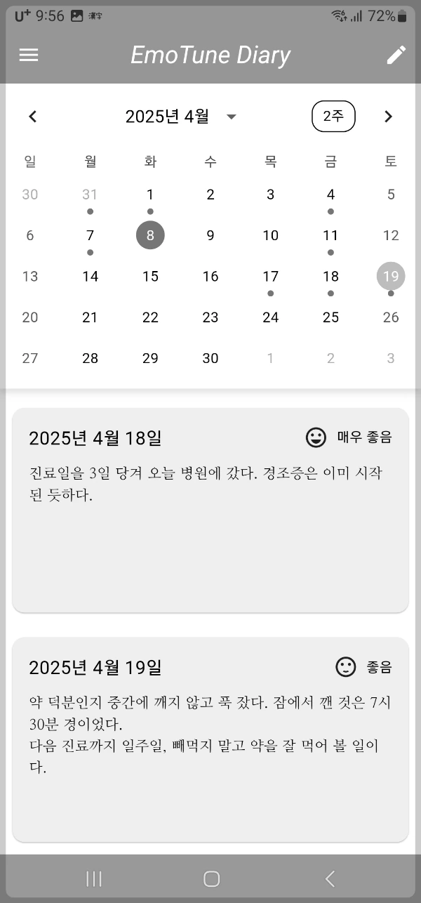 "몇 년 전부터 저의 숙원 사업(?)이었던 '기분 기록 일기 앱'을 드디어 완성했습니다!"