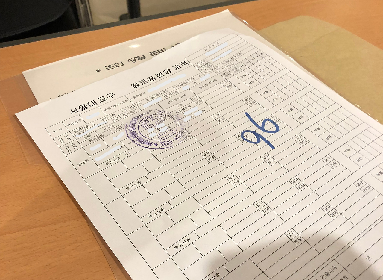 입장했던 순서대로 호명하면 나와서 순서 공을 뽑았다. 남편과 나는 누가 뽑을지 서로 미루다가 결국 내가 공을 뽑으러 나갔고, 다행히 운이 좋게도 중간 번호 96번을 뽑았다. 뽑은 번호는 교적 증명서에 적어주셨다. 우리는 그래도 탈락은 아니라며(200번대 정도까지 예약이 가능했던 것 같다.) 공 추첨이 끝나길 기다렸다.