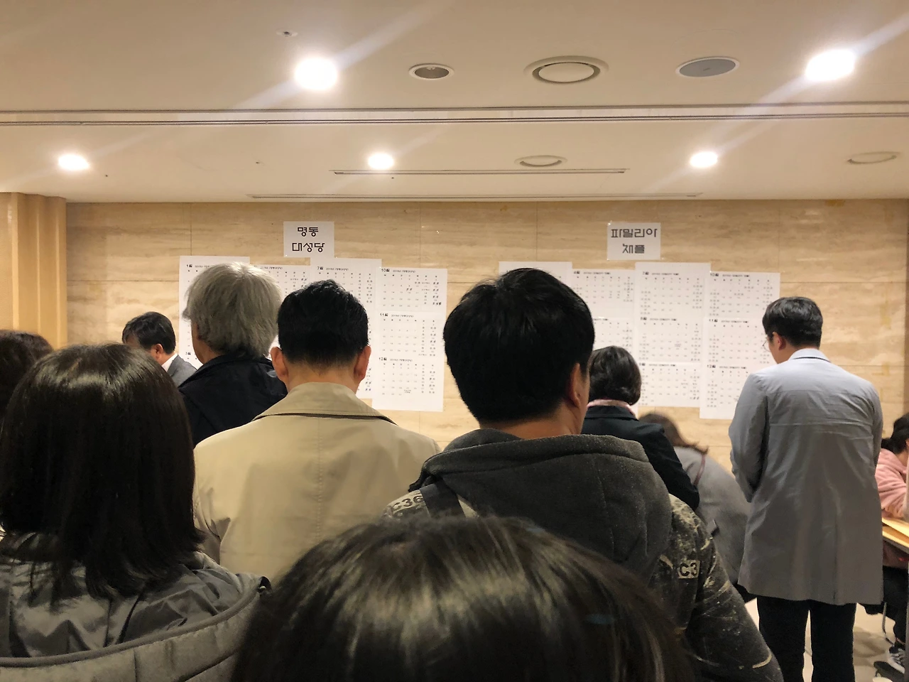 드디어 기다리던 추첨 당일이 되어 서류와 예약금을 가지고 추첨 장소인 프란치스코 홀에 도착했다.