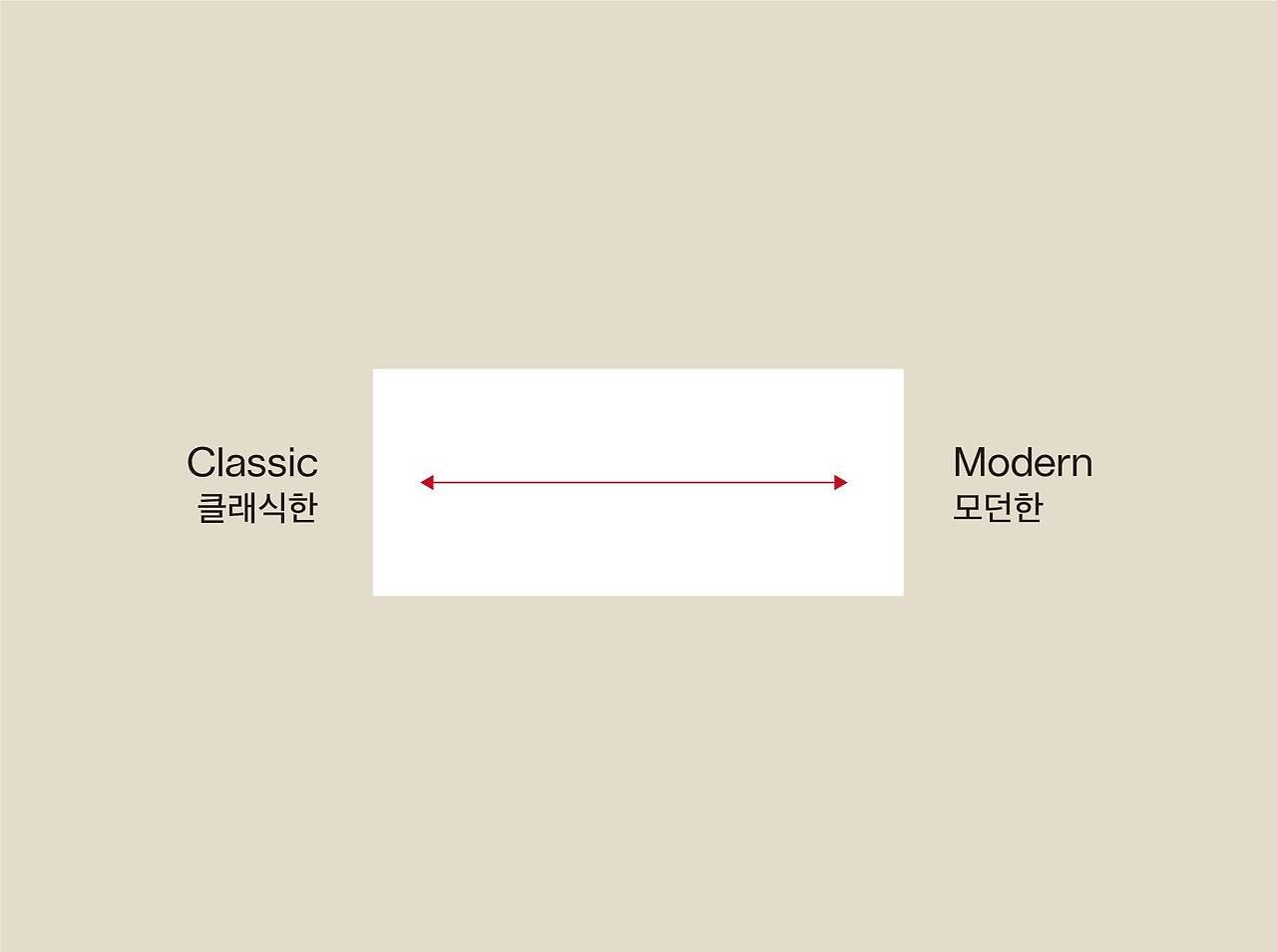 고전적이고, 정통적인, 우아하고, 이미 증명된, 약간의 장식이 가미된 느낌을 클래식(Classic)으로 정리해보았습니다. 우산과 회중시계를든 채로, 한껏 빼입은 영국신사 이미지 입니다. PP가 집중했던것은 모던함(Modern)입니다.